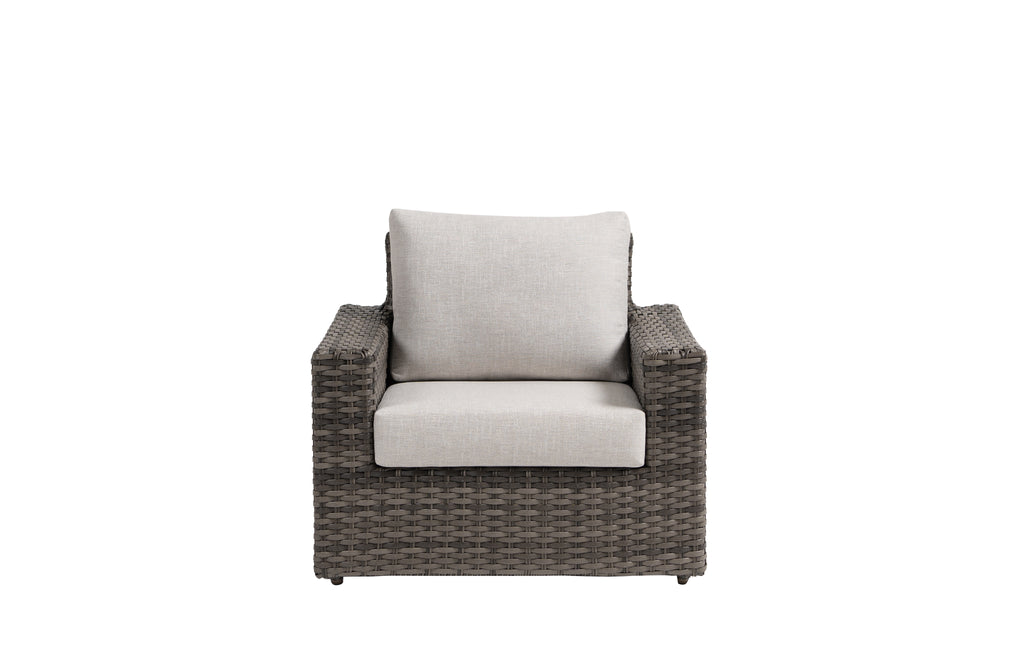 Meticulously hand-woven from highly resilient thick, braided resin in fog grey. Powder-coated aluminum frames provide strength and durability. Cushions are specifically engineered for outdoor use and covered in a wide selection of durable Subrella outdoor fabrics. Imported