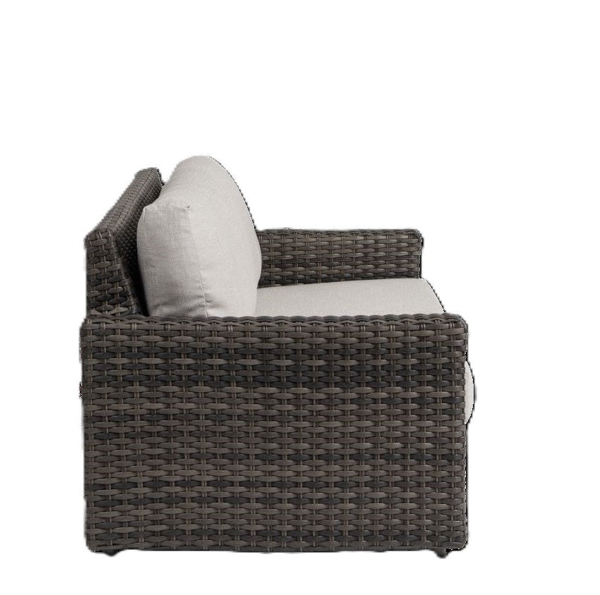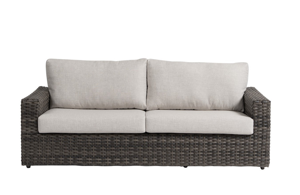 Meticulously hand-woven from highly resilient thick, braided resin in fog grey. Powder-coated aluminum frames provide strength and durability. Cushions are specifically engineered for outdoor use and covered in a wide selection of durable Subrella outdoor fabrics. Imported