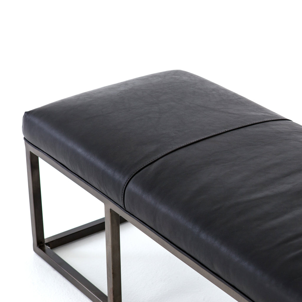 Streamlined iron base in gunmetal finish with a tailored jet black leather top. Imported