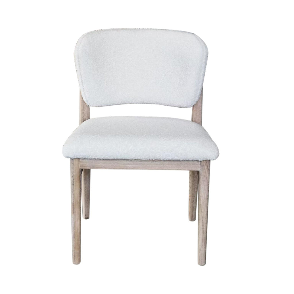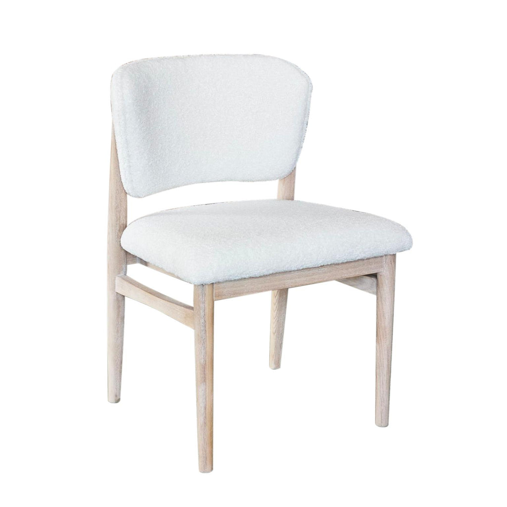 Bench-crafted from ash in a natural ash finish. Upholstered in an ivory boucle fabric. Imported