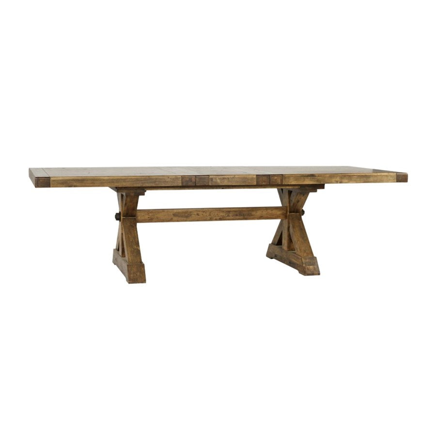 Hand crafted from solid birch and birch and finished in a rich sienna stain. Sealed with a precatalyzed lacquer for durability and easy maintenance. The Aspen Extension Table features a self-storing extension and a highly durable and reliable extension mechanism. The 88" - 110" extension table offers one 22" self-stored leaf while the 100" - 144" extension table features two self-stored 22" leaves. Imported