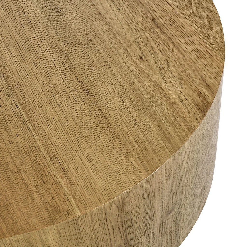 The Wayne Coffee Table features a sleek oak wood veneer construction with a stylish plinth base and convenient casters for easy mobility.