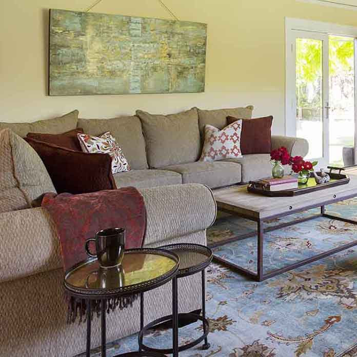 Individually hand-crafted in Southern California using hardwood, pine, and plywood construction with reinforced corner blocks for strength and durability. Lifetime warranty on frames to original buyer. Five year warranty on frame springs and seams and one year warranty on gel, feather-loft, feather-firm, and fiber-foam seats. Available in expansive fabric selection and in a multitude of pieces and configurations. Please see spec sheet for additional options. Shown in grade 12 upholstery and with feather loft seat inserts and down feather back inserts.