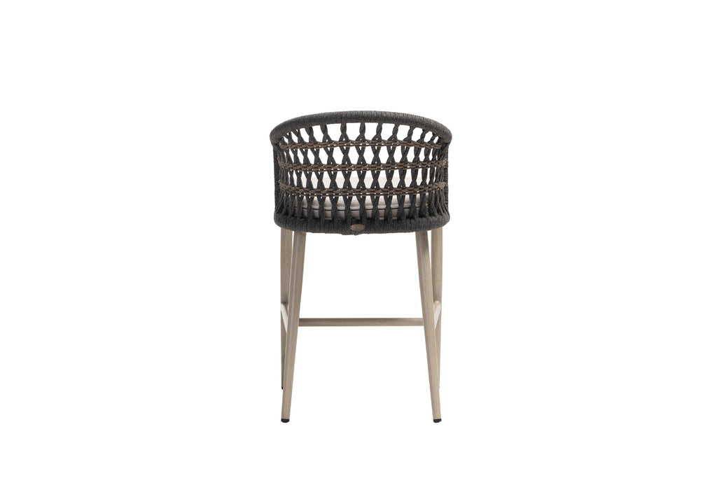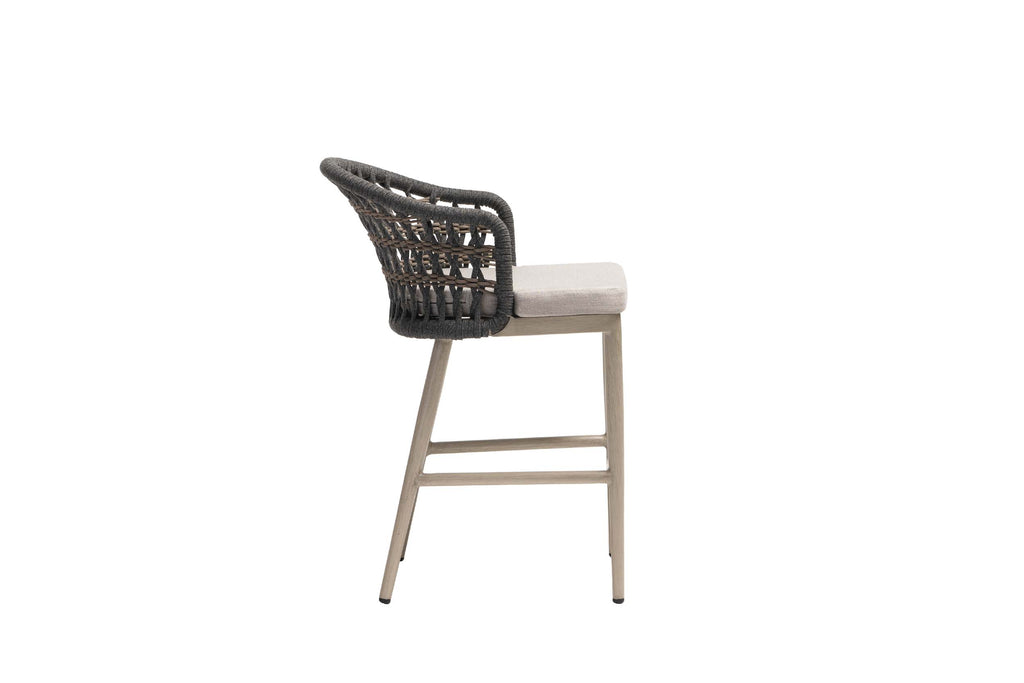 Intricately hand-woven UV resistant polyolefin ropes over hand-brushed weather-proof, powder-coated aluminum frames define this Florida-inspired collection. Cushy, rounded cushions in weather-resilient Sunbrella fabrics add ultimate comfort. Imported.