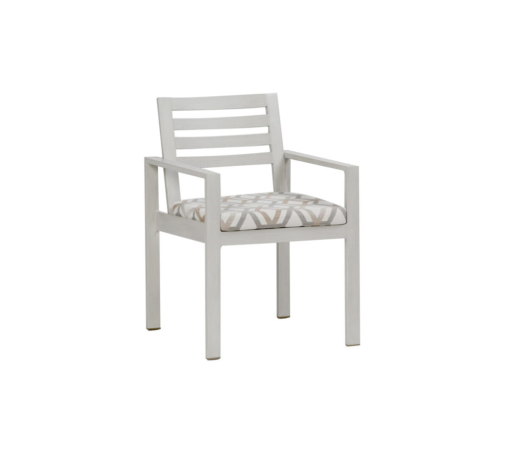 Bold, elegant lines define this inviting and stylish outdoor collection. Crafted exclusively from light-weight aluminum to provide rust-free weather-resilience and movability. Hand-brushed natural white finish. Weather-resistant reticulate foam seat cushions upholstered in outdoor Sunbrella fabrics assure a long-lasting  product and easy maintenance. Imported