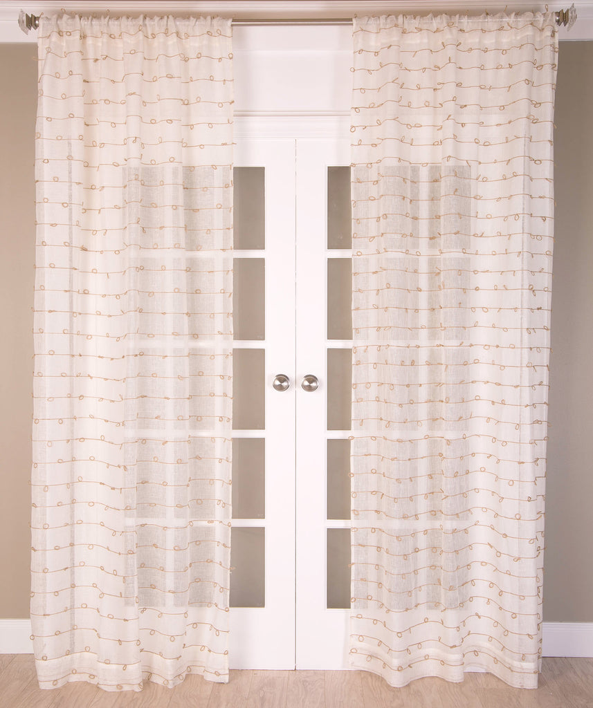 75% linen, 25% jute. Unlined panel with rod pocket. 54" wide. Made in India