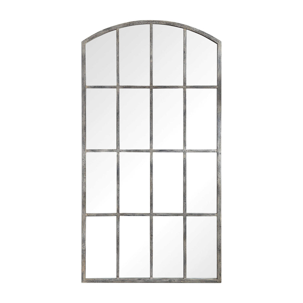 Inspired by large antique factory windows, the Amiel Arched Mirror is hand-forged with an aged rust grey finish and hand-applied white wash accents. Imported